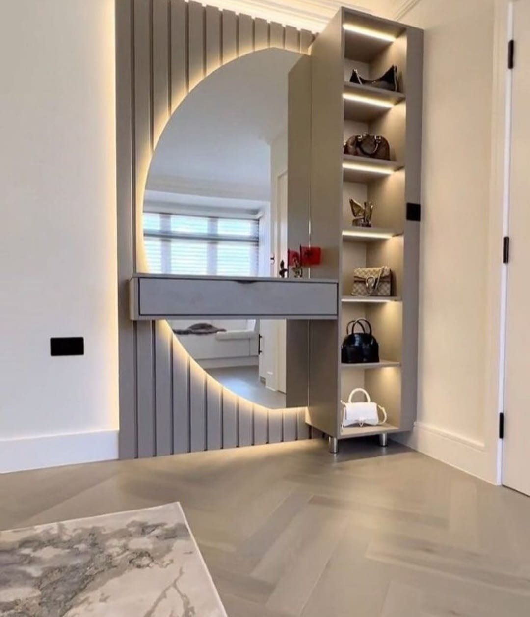 • ديكورات بديل خشب مع إضاءة مخفية