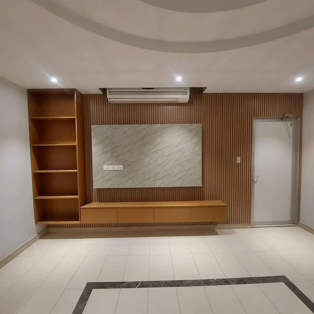 • تنفيذ ديكورات بديل خشب للتلفزيون